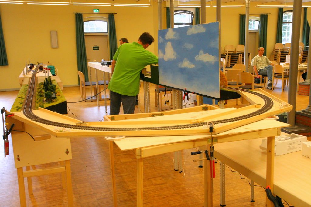 Im Vordergrund unserer Aktivitäten stehen gemeinsame Fahrtreffen in einer großen Halle, wo alle ihre Module mitbringen und diese für ein Wochenende zu einer riesengroßen Modellbahnanlage zusammenbauen.